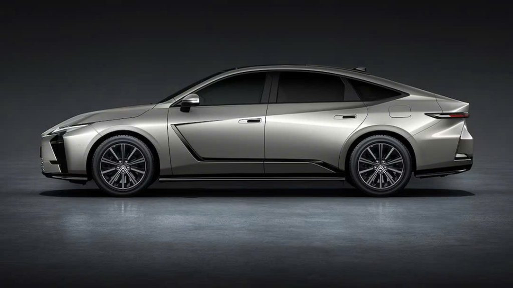 Ở ngoại thất, nguồn cảm hứng được lấy từ triết lý “Provocative Simplicity” – chủ đề thiết kế của mẫu concept thuần điện thế hệ mới LF-ZC – với ngôn ngữ tối giản đầy táo bạo và cá tính. Chiều cao của xe được tính toán kỹ lưỡng để tối ưu không gian cho bộ pin đặt dưới sàn mà vẫn đảm bảo sự rộng rãi và thoải mái cho khoang nội thất. Đây chính là nền tảng tạo nên tỷ lệ thân xe lý tưởng, thể hiện vẻ đẹp thuần khiết và biểu cảm của một chiếc sedan sang trọng.